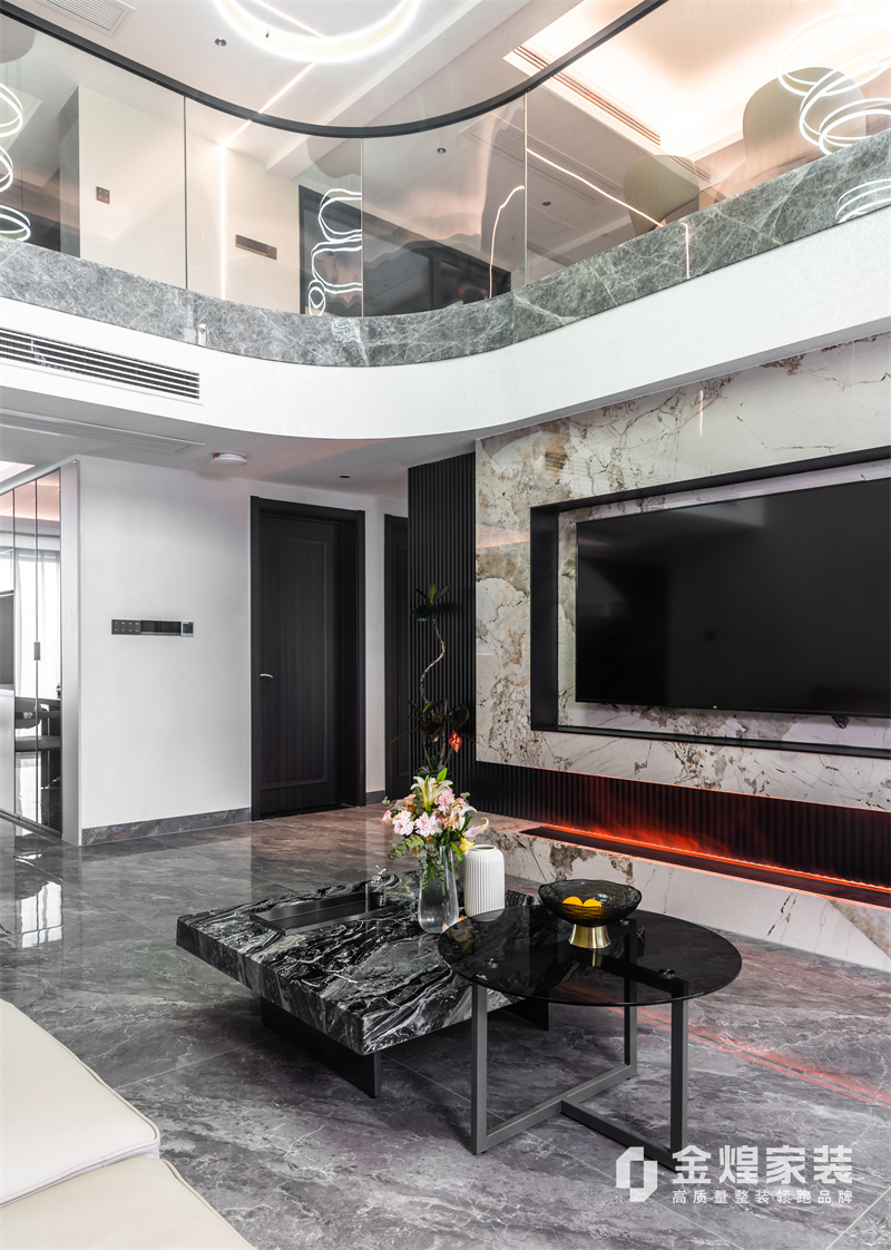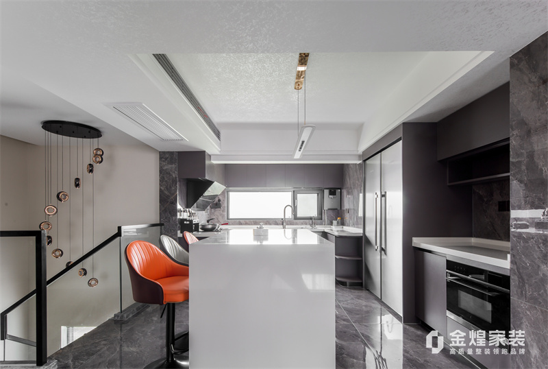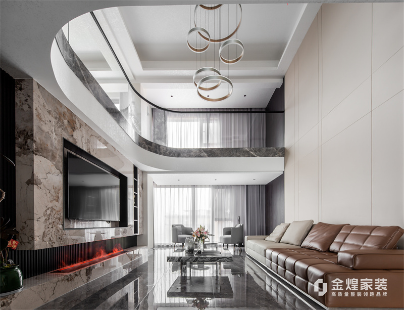 本案為意式風,自帶一種成熟的精英感,配色以沉穩大氣為主,黑白灰棕的深色系,少量色彩做為點綴。比起色彩上的花哨,更愿意回歸對質感和細節的追求。
