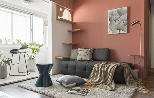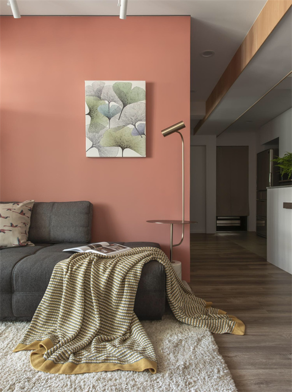 而粉色墻壁作為點綴,為客廳注入了一絲柔和的色彩,既溫暖又不失清新。墻上掛著北歐風格的裝飾畫與壁飾,與整體裝修風格相得益彰,展現出簡約而不簡單的美感。