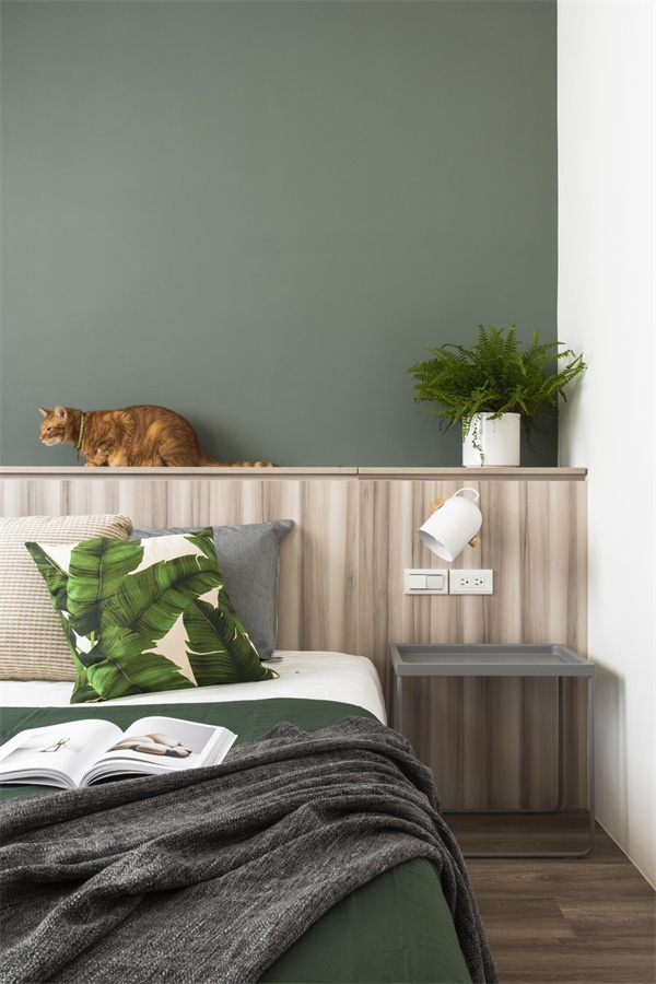 主臥以中性色調為主,淡灰色墻面+原木色地板組合,柔軟舒適的床品,搭配精致的軟裝,打造溫馨愜意的睡眠空間。精心挑選的綠植,為空間增添一份清新和舒適感。