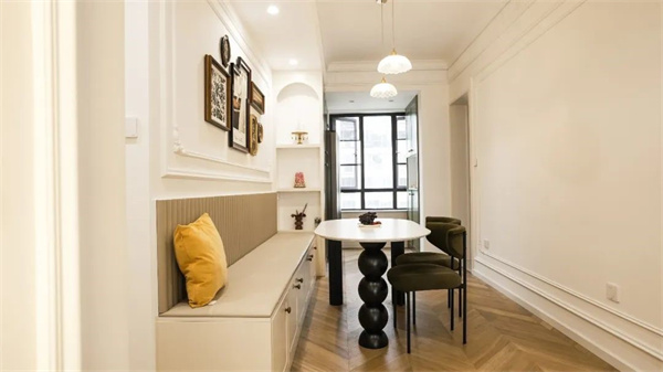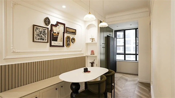 墻面裝飾選用奶油白的墻漆,并搭配精心挑選的裝飾畫,使整個餐廳更加富有個性和層次感。