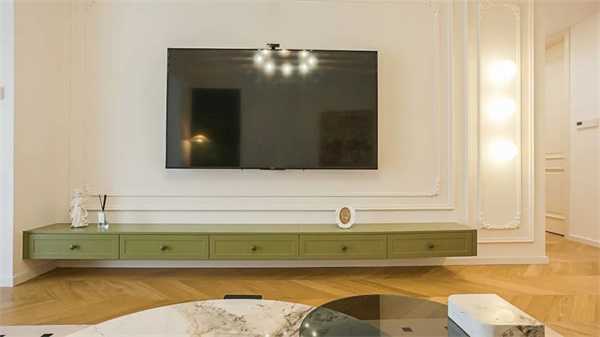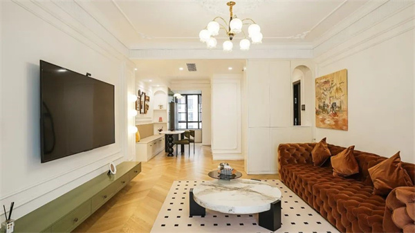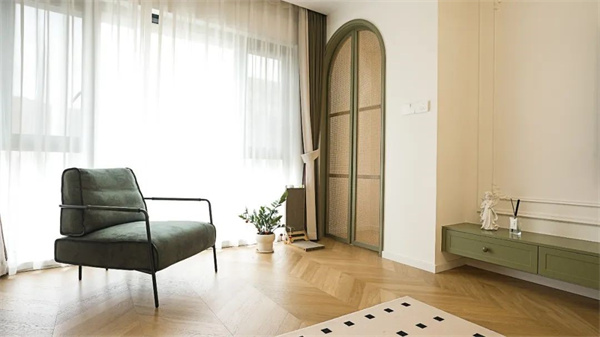 本案為法式復古+清新浪漫的裝飾風格,以綠色跳躍點綴,為整個空間增添活力,配以舒適的現代家居,營造優雅浪漫的居家氛圍。