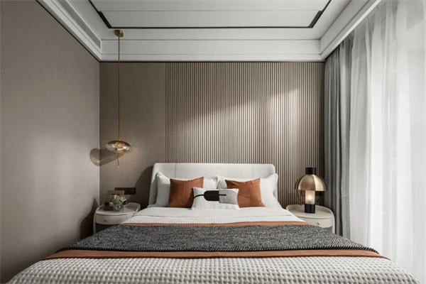 次臥設計更加輕松寫意。木飾背景墻面與白色的床品搭配出柔和的視覺效果,給人一種舒適放松的感覺。窗戶同樣帶來良好的采光效果,保持了次臥的明亮與通透,整個房間設計簡潔,卻不失溫馨與實用性。