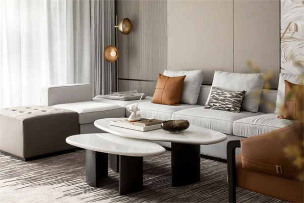 在客廳的設計中,采用簡約的家具和裝飾品,搭配簡約風格的藝術裝飾和照明燈具,選擇中性色調和柔和的色彩搭配,營造出輕松宜人的氛圍。同時,充分利用空間,確保流線型布局,使客廳顯得更加開闊和通透。