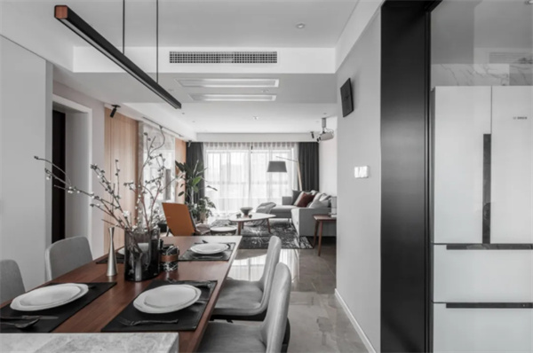 本案以黑白灰為主調(diào),創(chuàng)造出一個(gè)充滿精致和簡(jiǎn)約之美的室內(nèi)環(huán)境。黑、白和灰的中性色調(diào)是主宰整個(gè)裝修的基調(diào),打造出一種干凈、明亮、寬敞的氛圍。