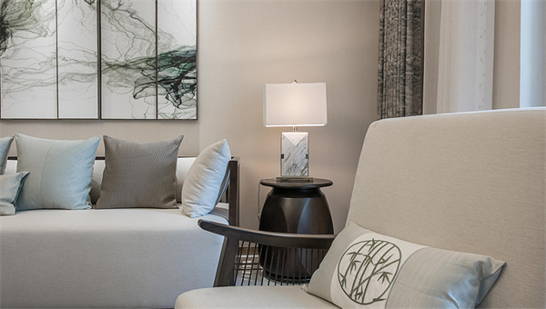 光線的魔力在于賦予美感以藝術(shù)性,茶幾上的瓷器和一對(duì)白色石獅擺件則汲取了東方雅致的意境,將簡(jiǎn)潔大氣和精巧雅致融合在一起,獨(dú)領(lǐng)東方美學(xué)的風(fēng)雅。