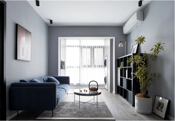 客廳采用無主燈設計風格,在頂面四周設置筒燈,布置出一個簡潔大方的空間;再搭配上現代舒適的家具,讓空間充滿時尚優雅的氣質。