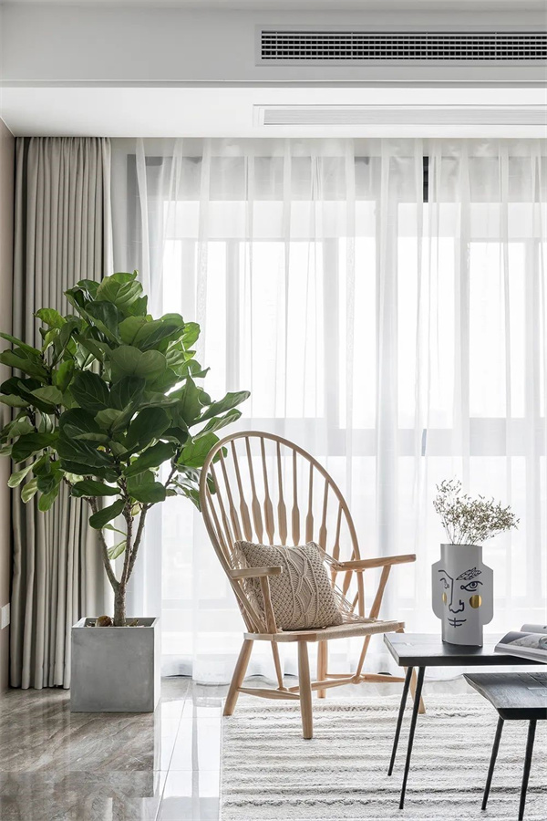 北歐風格以簡單結構與舒適功能的完美結合為特點,融入現代、實用和精美的設計元素,配合柔和的光線透過窗簾灑進空間,營造出一種溫暖而舒適的氛圍。