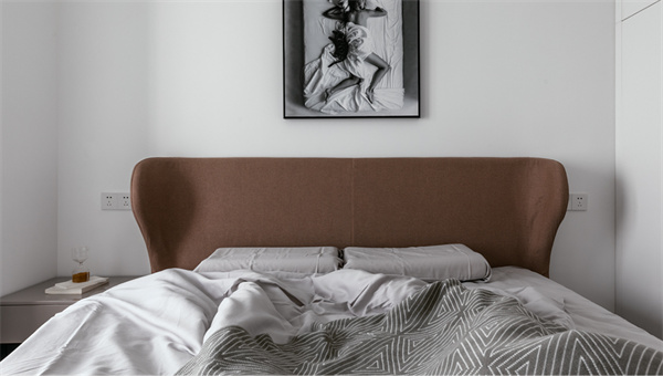 主臥延續(xù)了現(xiàn)代簡(jiǎn)約風(fēng)格的設(shè)計(jì)理念,以寧?kù)o舒適為主題房間鋪設(shè)了溫暖的原木地板,給人一種自然質(zhì)樸的感覺。床頭背景墻采用白色+灰色掛畫的組合設(shè)計(jì),既顯得沉穩(wěn)大氣,又增加了空間的層次感。