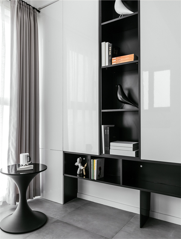 本案設(shè)計(jì)師通過(guò)簡(jiǎn)潔的線條、純凈的色彩以及精致的家具選擇,打造出一個(gè)既時(shí)尚又實(shí)用的居住空間。黑、白和灰的中性色調(diào)成為主宰整個(gè)裝修的基調(diào),打造出一種干凈、明亮、寬敞的氛圍。