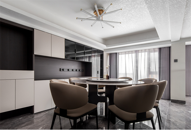 餐廳強調用餐空間的舒適和品質感。精美的吊燈、壁燈,以及細致考究的餐具擺設,進一步提升了整個空間的奢華感和舒適度,打造出一個與家人和朋友共享美食的完美場所。