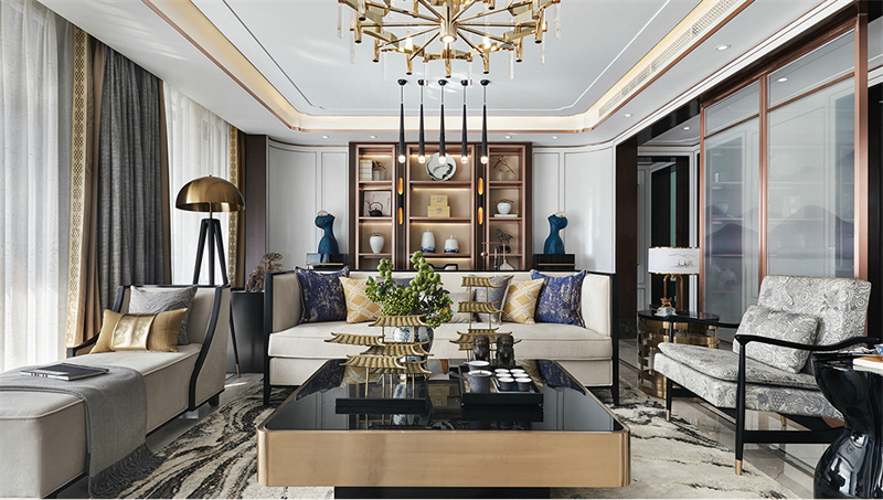 新中式風(fēng)格繼承了中華傳統(tǒng)文化的優(yōu)雅別致。整個設(shè)計以簡潔流暢的線條為主,運用天然材質(zhì)和經(jīng)典的中式圖案,營造出寧靜而高雅的氛圍,感受中式的獨特魅力與雅致。
