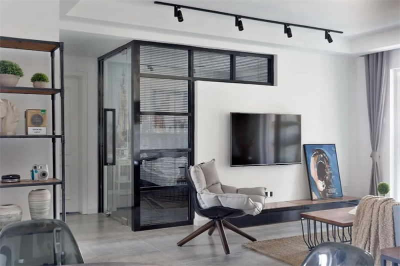 白色的電視墻+壁掛電視機,小面積的電視墻也顯得簡約而大方。